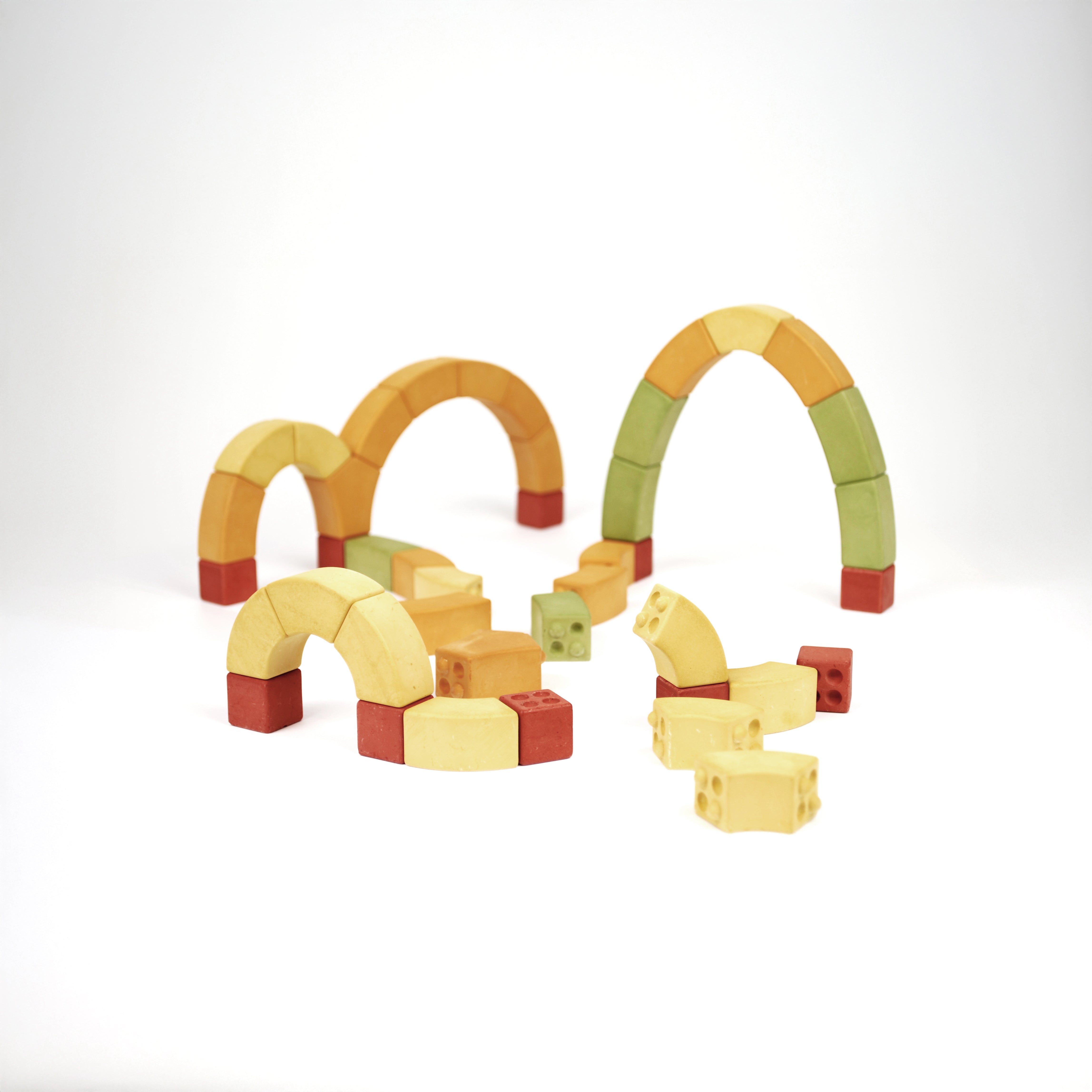 Die kajuSPIELBAUSTEINE sind kein gewöhnliches Bauspielzeug – sie sind echte, handgefertigte Bausteine aus Upcycling-Hartgips, mit denen Kinder freihändig stabile Bögen und komplexe Bauwerke erschaffen können.