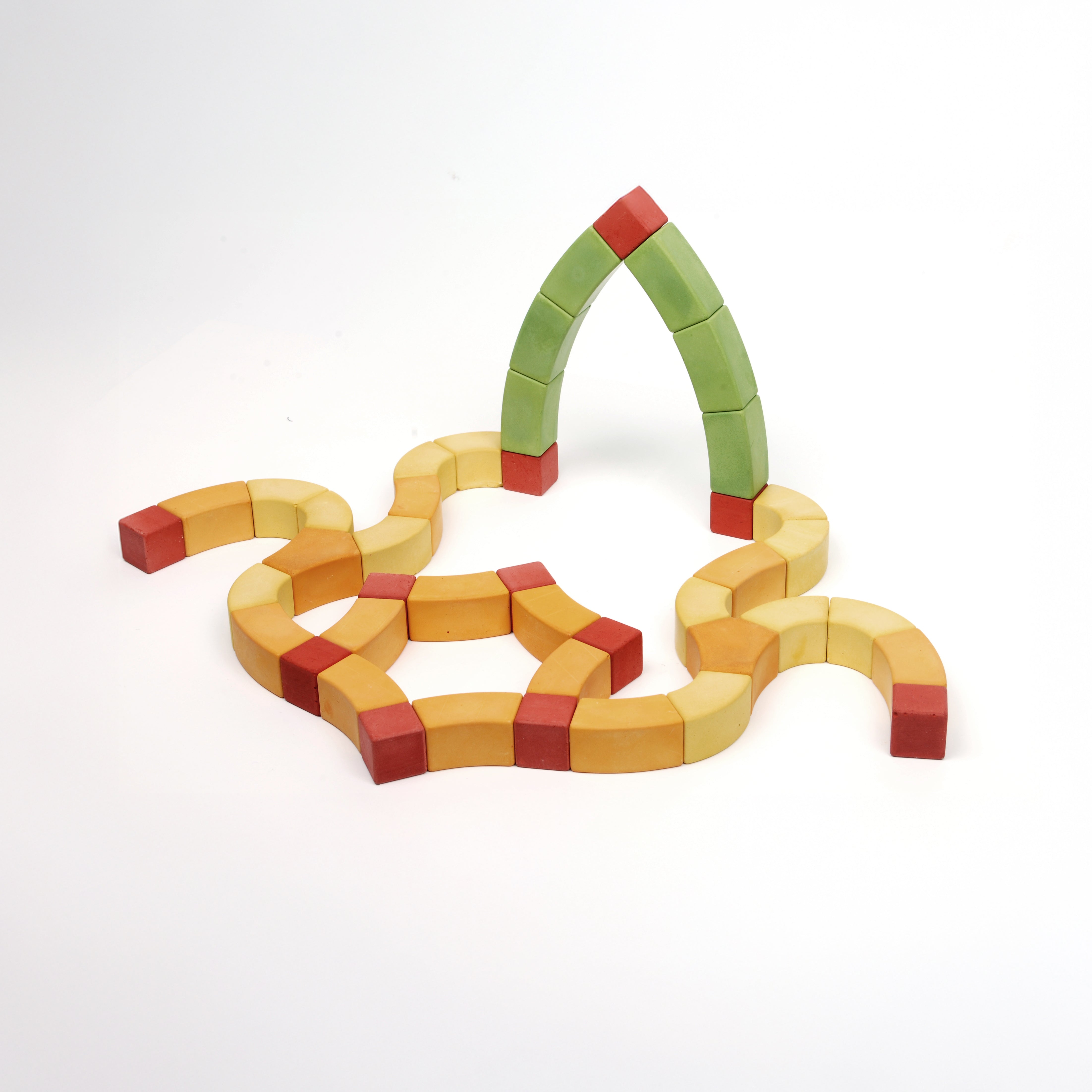 42 Bogenbausteine aus natürlichem Hartgips (innovatives Bausteinsystem mit drei unterschiedlich stark gekrümmten Bogensteinen)